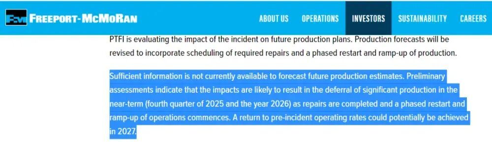 就在9月24日,美国矿业巨头自由港公司公布了一个让人不安的消息。
