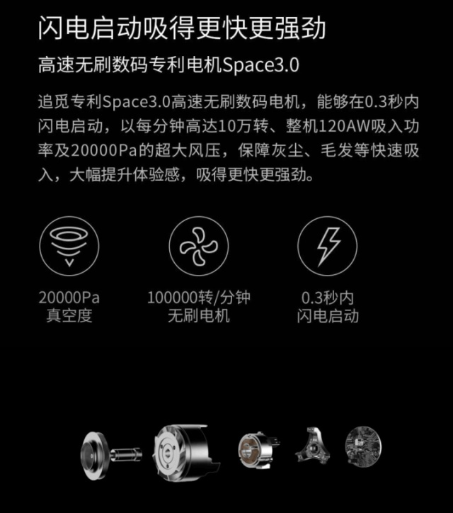 高速马达是清洁电器的“心脏”,直接决定吸力、效率、体积、噪音、续航等核心体验。尽管当时小米生态链里已经有名声在外的石头等品牌,但追觅很快杀出重围,用不到三年时间,从一个最边缘的角色,站到了C位。
