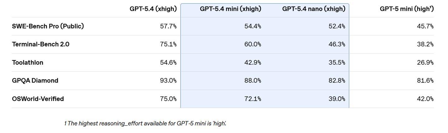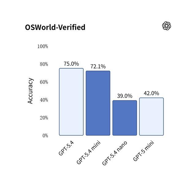 此外,它在 SWE-Bench Pro 和 OSWorld-Verified 等多项基准测试中,成绩已经逼近体积更大的 GPT-5.4 模型。